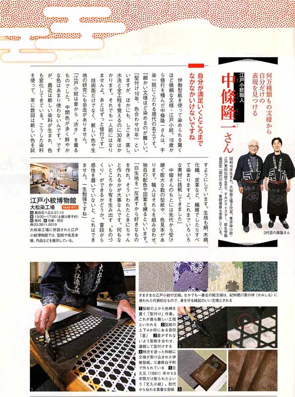 「大松染工場三代目・中條康隆が語る。江戸小紋・江戸更紗の今とこれから」として紹介されています。