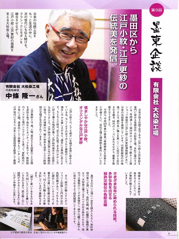「大松染工場三代目・中條康隆が語る。江戸小紋・江戸更紗の今とこれから」として紹介されています。