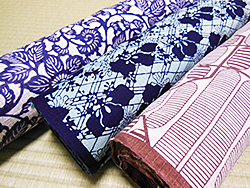 全て手染めの商品です。以上の着尺以外にも多数の紋様・色があります。