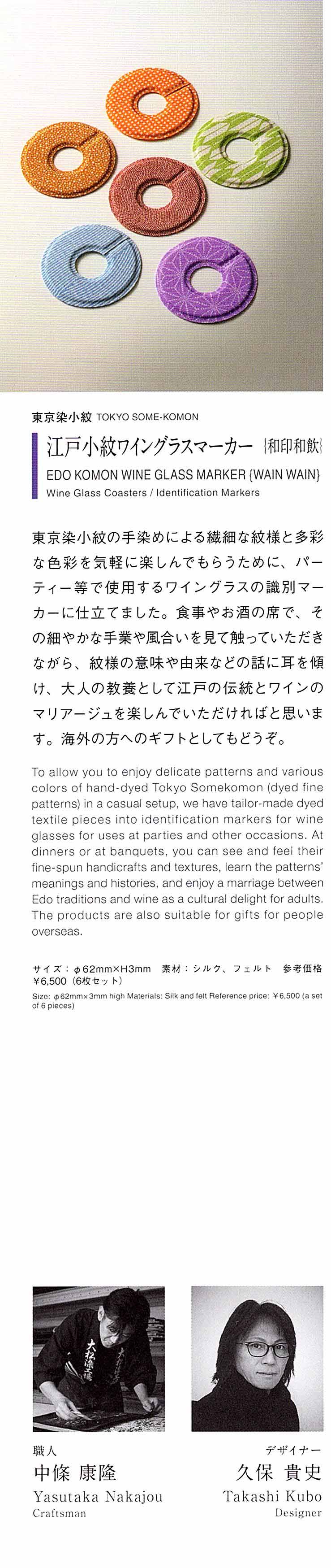 東京手仕事プロジェクトに”江戸小紋ワイングラスマーカー(和印和飲)”